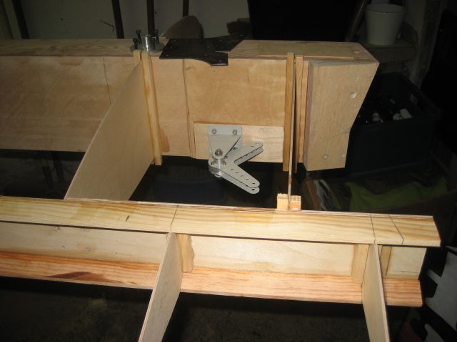 glued to the spar, start rigging the aileron controls and rudder bellcrank |