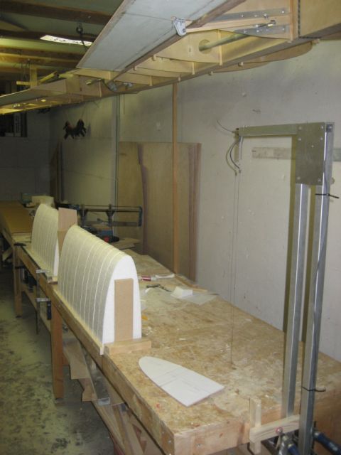 hanging on the ceiling, hotwire setup and PS mould forms clamped together |