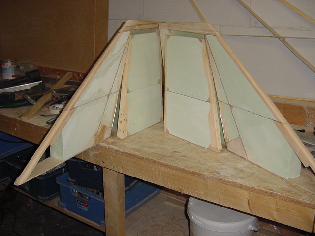 | 25 -11-2006 First complete vertical stabilizer woodwork ready. | 15 -11-2006 Center part of the verticalstabilizer. |
