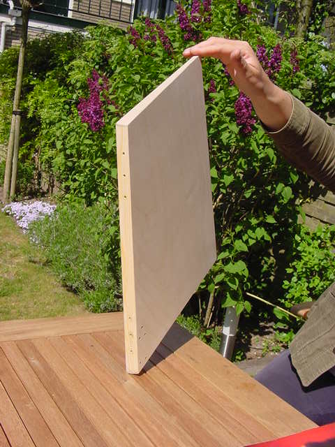 | 16-2-2007 New spoiler control horns. The old spoiler control horn had to be changed. The connection bolts where interfering with the hinge bolts. | 22-04-2007 I bought the plywood for vert stab and canard. The first experiment with the vacuum bagging on the rudder |